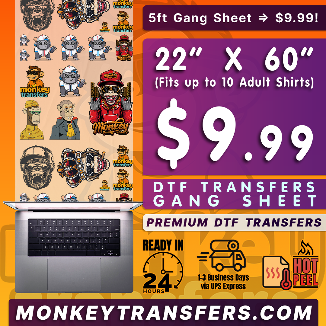 With proper care, Monkey Transfers DTF prints can handle 40+ washes without cracking, fading, or peeling.